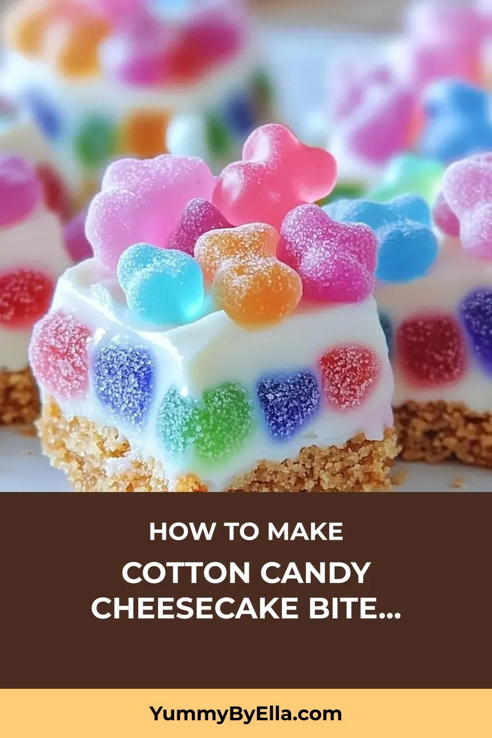 Step right up to a magical carnival of flavors with these delightful Gummy Cotton Candy Cheesecake Bites! As a food blogger and mom, I know the importance of creating desserts that spark joy, and these whimsical treats hit the mark every time. Combining the creamy goodness of cheesecake with the nostalgic taste of cotton candy and topped with colorful gummy candies, these bites are a surefire hit at any celebration.
