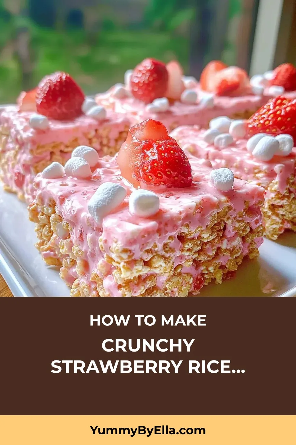 Grease a 9×13-inch baking dish and press the Rice Krispie mixture evenly into the pan. Sprinkle the strawberry crunch mix evenly on top and press gently to adhere.