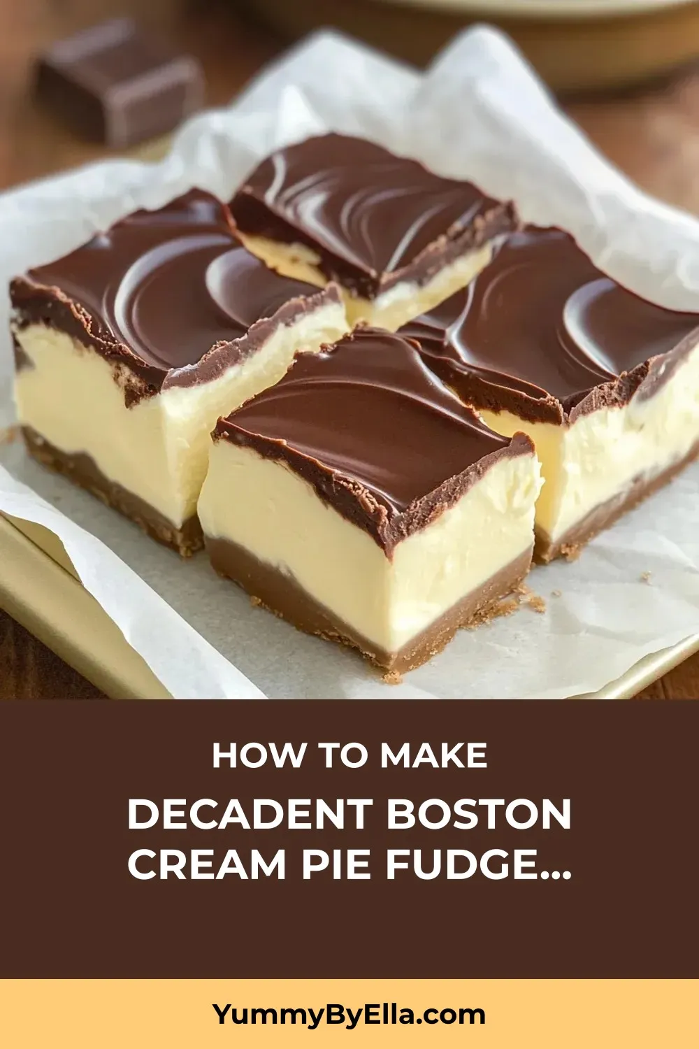 “Rich and creamy Boston Cream Pie Fudge – a decadent treat with layers of vanilla and chocolate swirls, no candy thermometer needed!”