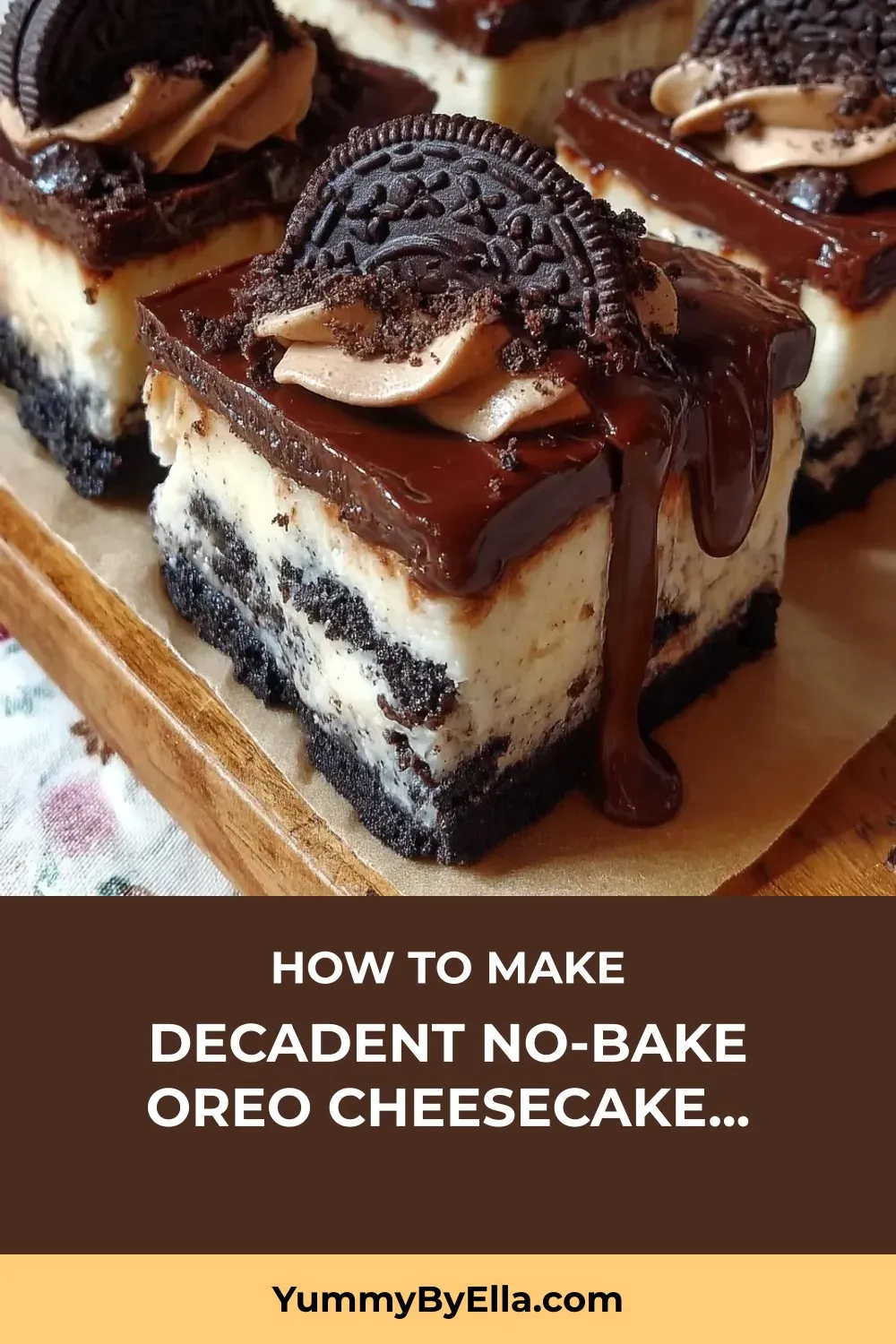 “Indulge in creamy No-Bake Oreo Cheesecake Bars – a decadent, make-ahead treat with layers of Oreo cookies and silky ganache.”