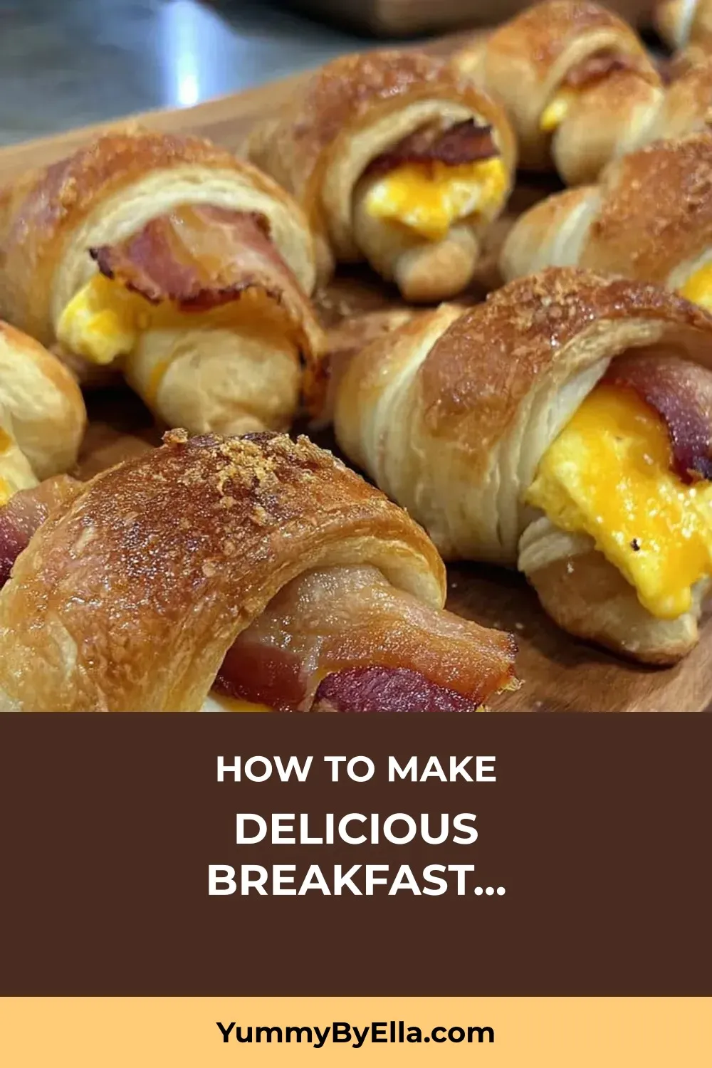 Roll Them Up: Roll up each crescent roll from the wide end, ensuring the bacon, eggs, and cheese are completely wrapped inside. Place them seam side down on a prepared baking sheet.