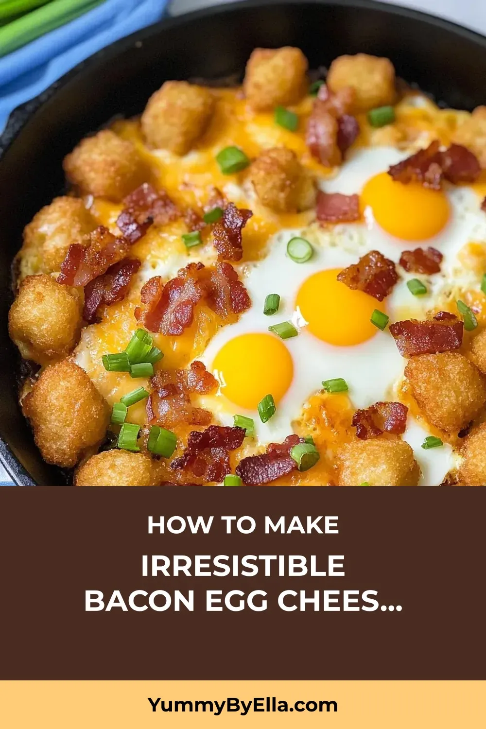 Yes, you can prep most components ahead of time. Cook and crumble the bacon, shred the cheese, and slice the green onions the night before for quick assembly in the morning. If you’re really pressed for time, you can even layer the tots, bacon, and cheese in the skillet and refrigerate overnight – just bring it to room temperature before adding the eggs and baking.