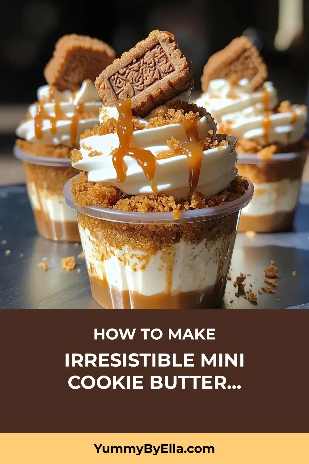 Serve these Mini Cookie Butter Cheesecake Cups as a delightful centerpiece on your dessert table. Arrange them on a tiered stand with small spoons for easy serving, or present them on a rustic wooden board with fresh berries for a brunch setting. For a festive touch during the holidays, sprinkle the tops with colored sprinkles or edible glitter. The individual portions make them perfect for gatherings, and you can even customize them with creative additions like chocolate chips, pumpkin pie spice, or liqueurs for adult guests.