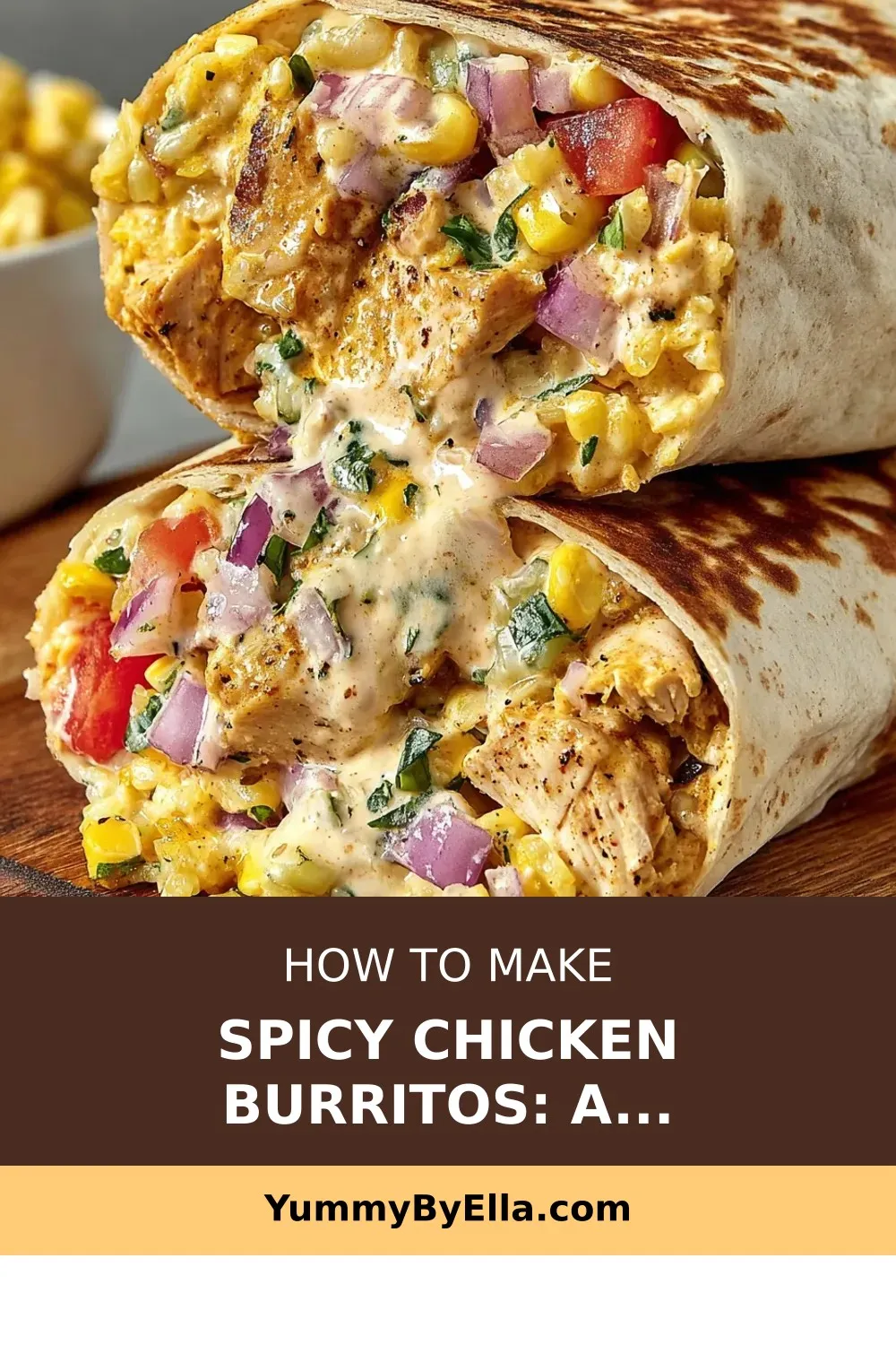 “Spice up your dinner with flavorful spicy chicken burritos loaded with seasoned chicken, fried rice, veggies, and a tangy yogurt sauce.”