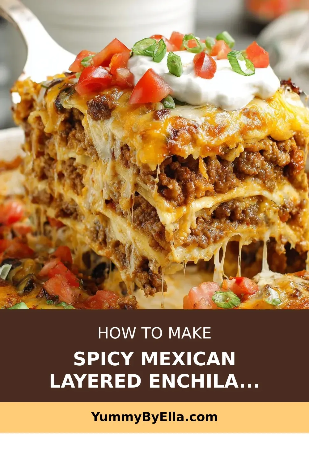 Rest and serve: Allow the lasagna to rest for 10 minutes before slicing. Garnish with diced tomatoes and green onions, and serve with sour cream.