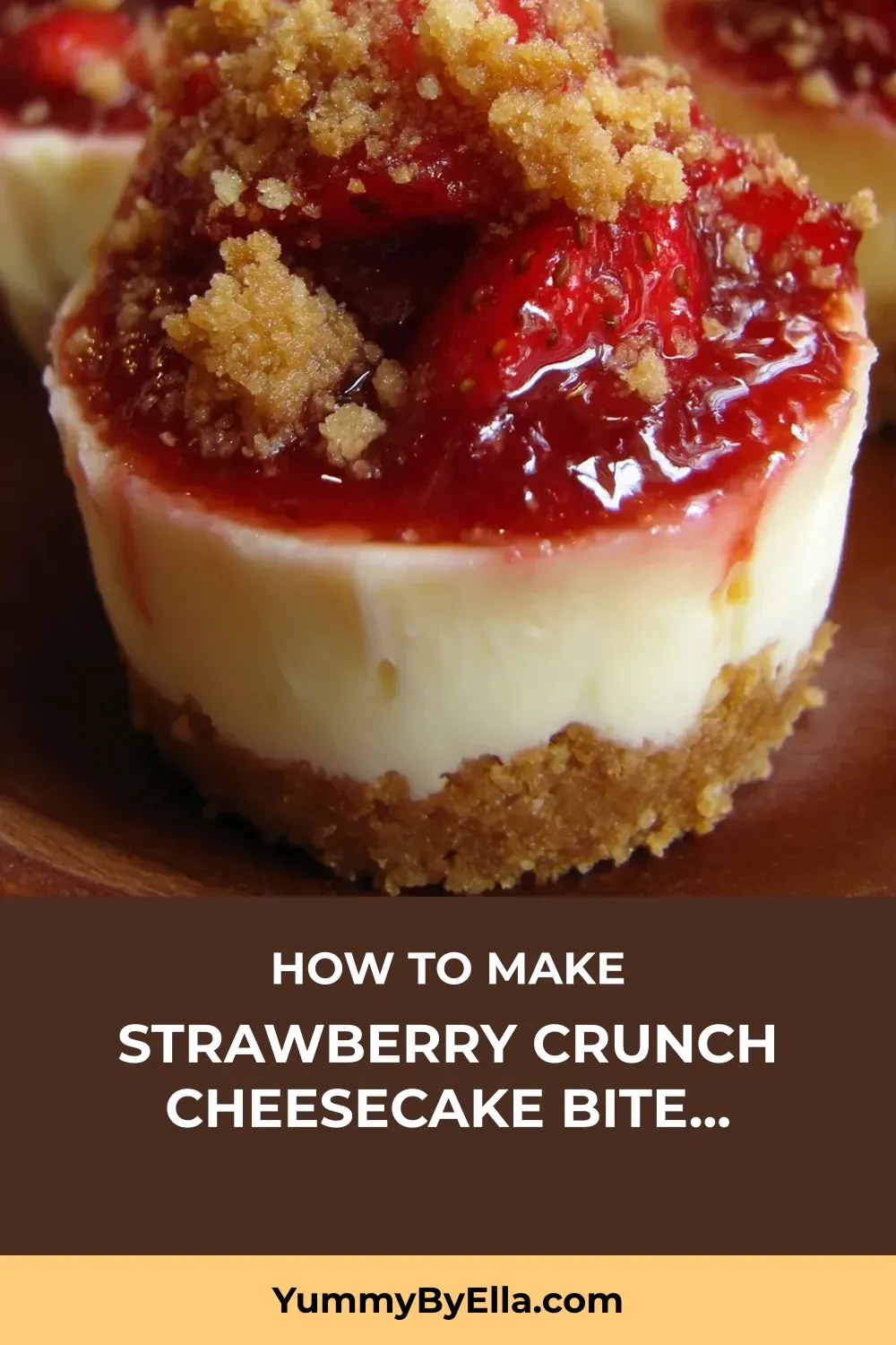 Irresistible mini cheesecakes with a buttery crust, creamy filling, and a signature strawberry crunch topping, perfect for parties and sweet indulgence.