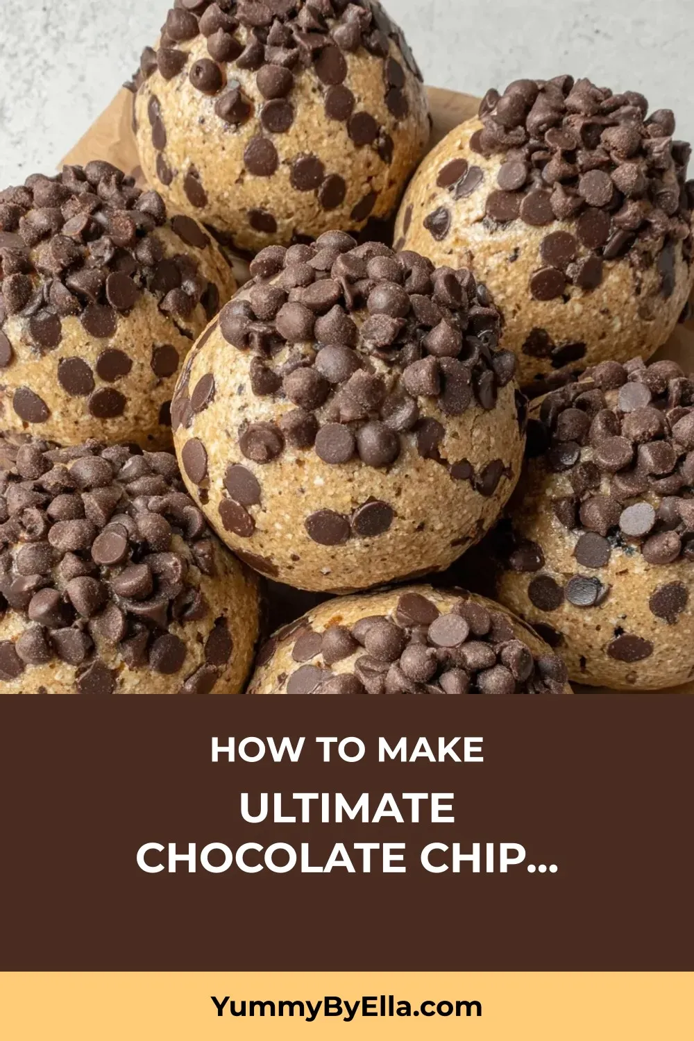 Take approximately half a cup of dough and form into a ball. Coat each ball generously by rolling in extra chocolate chips.